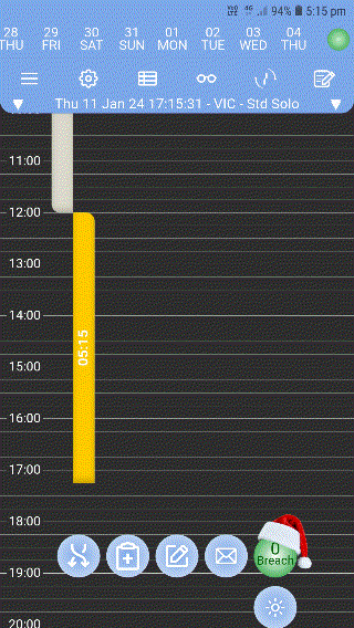 On the driver's timeline, Safee app notifies the driver that the rest hasn't started on time, and that the driver has 8 minutes to switch to rest without a breach recorded. If the driver made the switch before the 8 minutes lapse, no breach line indicator is drawn. Otherwise, the breach line indicator lights up at the end of the 8 minutes tolerance, as shown in this video (tap to view in full screen)
