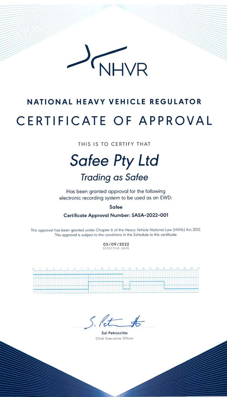 Here's Safee Certification from NHVR. you can find the same on NHVR Accreditation Register: